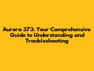 Aurora 373: Comprehensive Guide, Issues, And Solutions