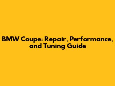 BMW Coupe: Repair, Performance, And Tuning Guide
