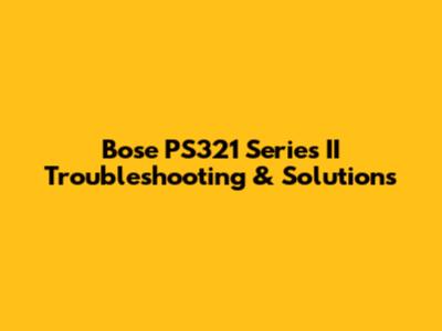 Bose PS321 Series II: Troubleshooting & Solutions