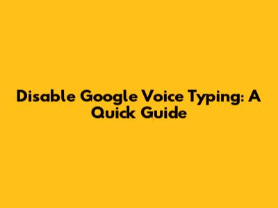 Disable Google Voice Typing: A Quick Guide