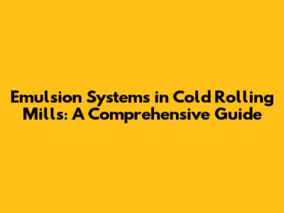Emulsion Systems In Cold Rolling Mills: A Comprehensive Guide