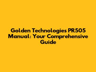 Golden Technologies PR505 Manual: Ultimate Guide & Troubleshooting