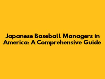 Japanese Baseball Managers In America: A Comprehensive Guide