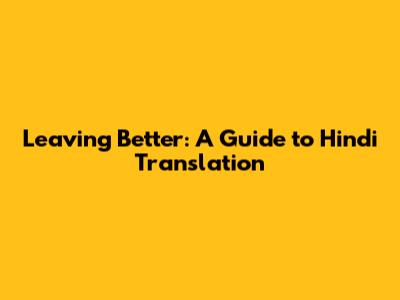 Leaving Better: Hindi Translation Guide