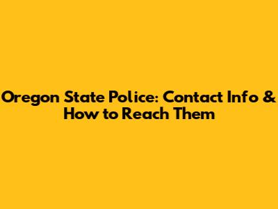 Oregon State Police: Contact Info & How To Reach Them
