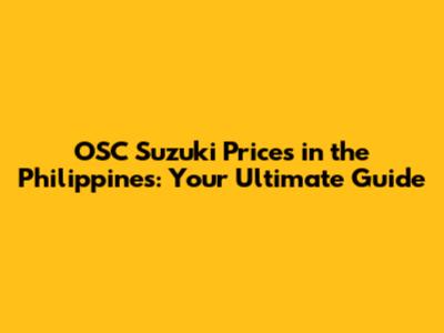 OSC Suzuki Prices In The Philippines: A Comprehensive Guide
