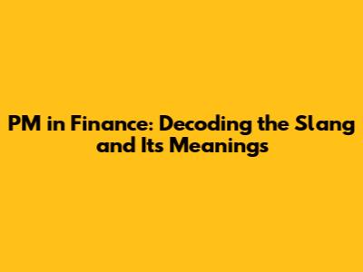 PM In Finance: Decoding The Slang And Its Meanings