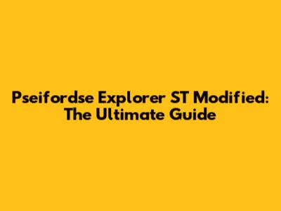 Pseifordse Explorer ST Modified: The Ultimate Guide