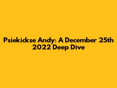 Psiekickse Andy: A December 25th 2022 Deep Dive