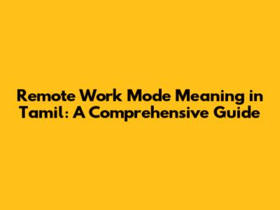 Hey guys! Ever wondered about remote work mode meaning in Tamil? Well, buckle up because we're diving deep into the world of working from anywhere, explained in a way that's easy to understand. We'll explore what it means, how it's done, and why it's becoming super popular. It’s no secret that the way we work has been changing rapidly, and remote work is at the forefront of this transformation. From understanding its core concept to looking at its benefits and challenges, we'll cover it all. So, if you're curious about embracing the work-from-anywhere lifestyle or just want to know what all the buzz is about, keep reading! Let's get started, shall we?