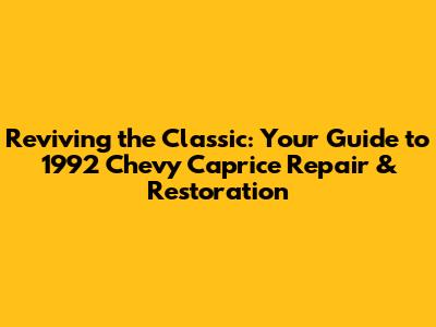 Common Issues and 1992 Caprice Repair Solutions