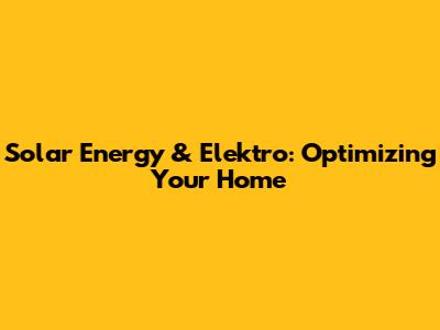 Solar Energy & Elektro: Optimizing Your Home