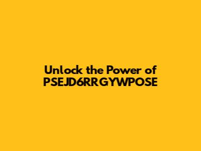 Unlock The Power Of PSEJD6RRGYWPOSE