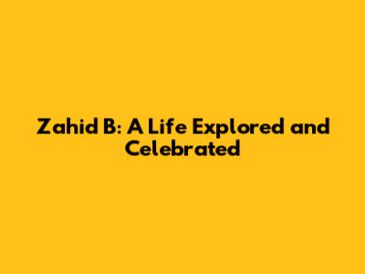 Zahid B: A Life Explored And Celebrated